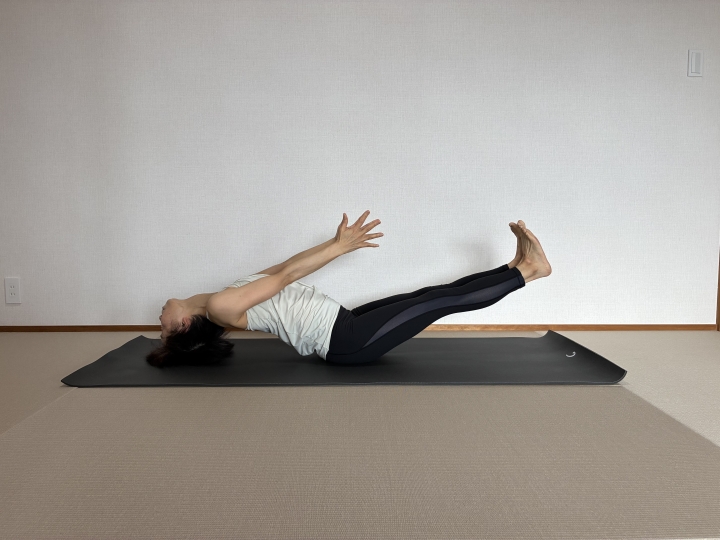 ②吸う息で下腹部を引き上げ背骨を十分に伸ばします